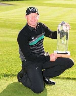 Jamie Donaldson poses with the trophy happily knowing he'll be at Glenagles next month for the Ryder Cup. PHOTO: Getty ImagesDenmark’s Søren Kjedson appeared to be the main threat to Donaldson in the final round, and took the lead with a birdie on the fifth after Donaldson bogeyed the fourth. Kjedson and Donaldson exchanged the lead once more before the Dane handed the Donaldson the lead with bogies on both the 8th and 9th holes. This gave the Welshman a one shot lead at the turn.