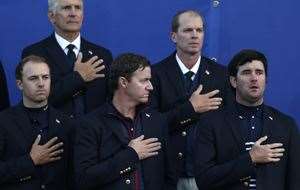 Bubba Watson sheds a tear as he stands for the American anthem during the trophy presentation. PHOTO: Getty ImagesJimmy Walker had an outstanding victory over nine-time Ryder Cup veteran Lee Westwood. Walker carded eight birdies for the round, clinching the win on the 16th, adding some respectability to the US score.