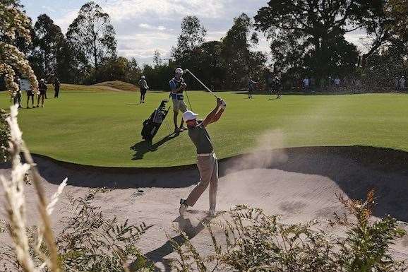 Michael Wright escapes from a fairway bunker playing his final hole of the third round. PHOTO: Getty ImagesRanked No.1134 in the world, Spargo has only made the cut at the Masters once before and that was back in 2007 when he finished tied for 65th. But his form has been improving lately, which was evident at the West Australian Open last month where he led into the final round and faded to finish tied third.
